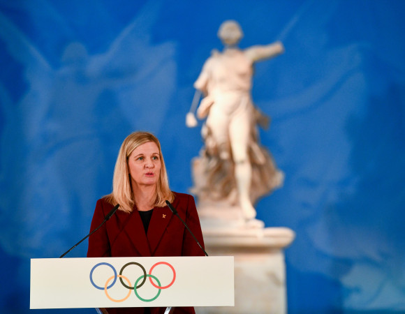 Εμφανώς συγκινημένη όταν ανέβηκε στο βήμα, η πρόεδρος της Διεθνούς Ολυμπιακής Επιτροπής Κίρστι Κόβεντρι αναφέρθηκε με έμφαση στο μήνυμα ειρήνης που μεταφέρουν οι Ολυμπιακοί Αγώνες σε αυτούς τους ταραγμένους καιρούς, επισημαίνοντας χαρακτηριστικά: