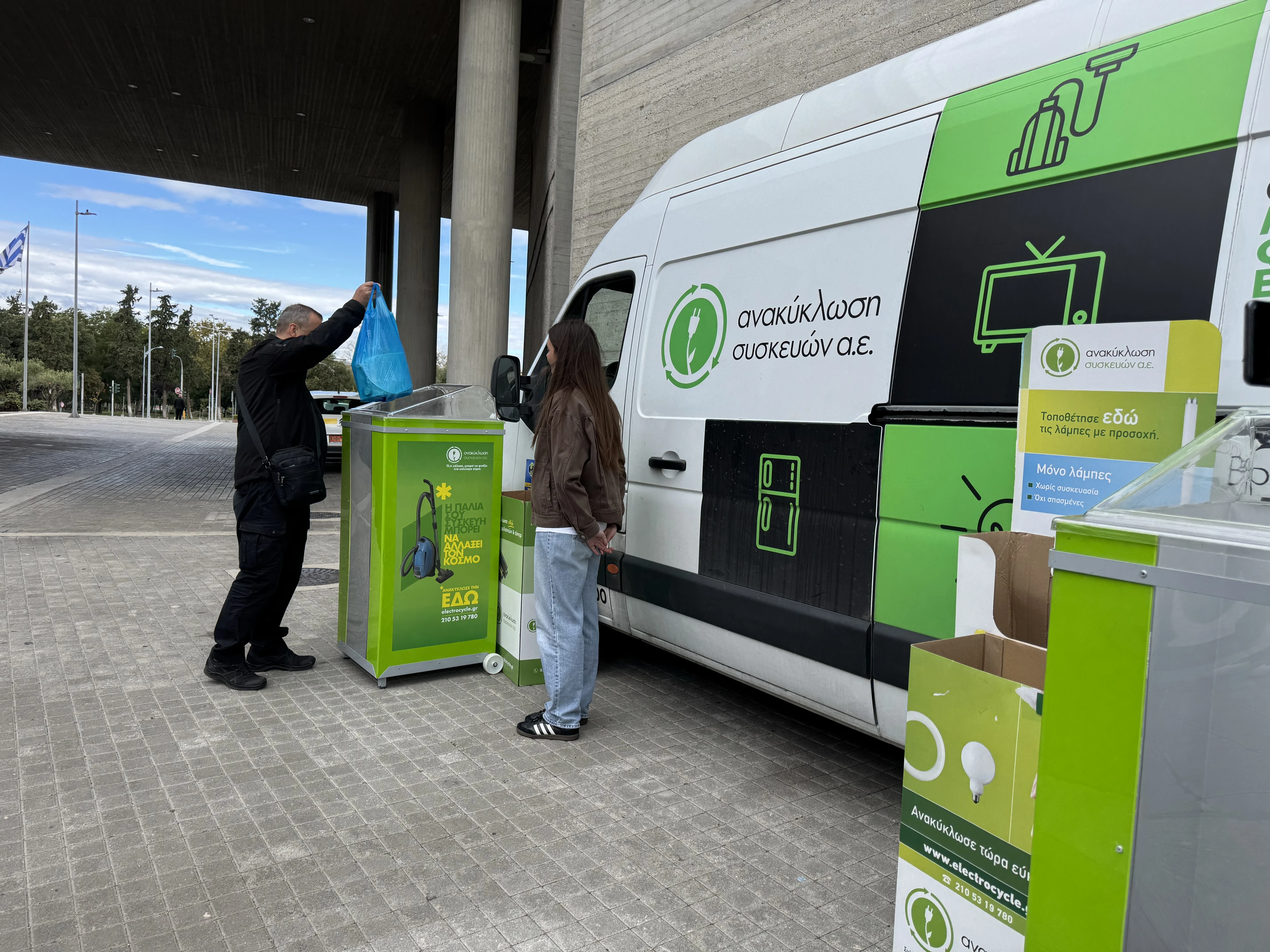 Από τις 10 το πρωί, στο δημαρχείο της πόλης έχει «σταθμεύσει» ένα ειδικά διαμορφωμένο van που προσκαλεί τους δημότες να πετάξουν παλιές, ξεχασμένες ή χαλασμένες ηλεκτρικές συσκευές, κινητά τηλέφωνα, φορτιστές, υπολογιστές αλλά και λαμπτήρες, στέλνοντας με τον τρόπο αυτό το μήνυμα για την προστασία του περιβάλλοντος.