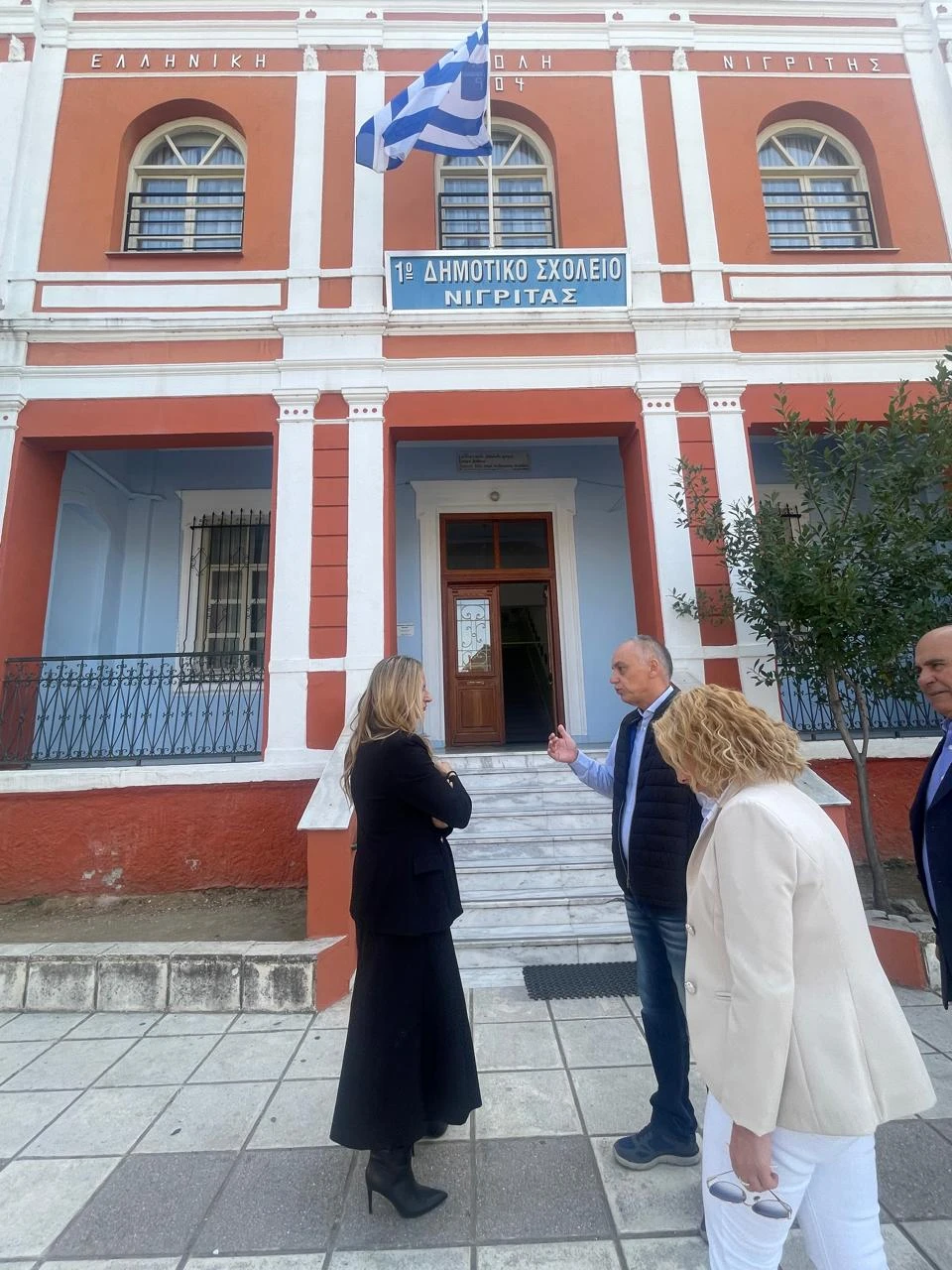 Η κ. Σώκου συνέχισε την περιοδεία της στην Τοπική Διεύθυνση ΕΦΚΑ Νιγρίτας, όπου συναντήθηκε με την Προϊσταμένη του Αποκεντρωμένου Τμήματος Κοινωνικής Ασφάλισης Νιγρίτας, Δέσποινα Αγγελίδου. Ακολούθως, επισκέφθηκε το Γραφείο Εξυπηρέτησης Φορολογουμένων όπου ενημερώθηκε για τη λειτουργία της υπηρεσίας και τις ανάγκες των πολιτών. Στο Κέντρο Δημιουργικής Απασχόλησης Παιδιών με Αναπηρία (ΚΔΑΠ ΜΕΑ), είχε συνάντηση με τη Διευθύντρια της δομής, Στυλιανή Μπίμπη, με την οποία συζήτησε για τις δυνατότητες περαιτέρω στήριξης. Αμέσως μετά, επισκέφθηκε το Κέντρο Ημερήσιας Φροντίδας Ηλικιωμένων στα Θερμά Νιγρίτας, όπου ενημερώθηκε από τη Δήμαρχο για τις παρεχόμενες υπηρεσίες προς τους ηλικιωμένους της περιοχής. Η περιοδεία συνεχίστηκε στο 1ο Δημοτικό Σχολείο Νιγρίτας.