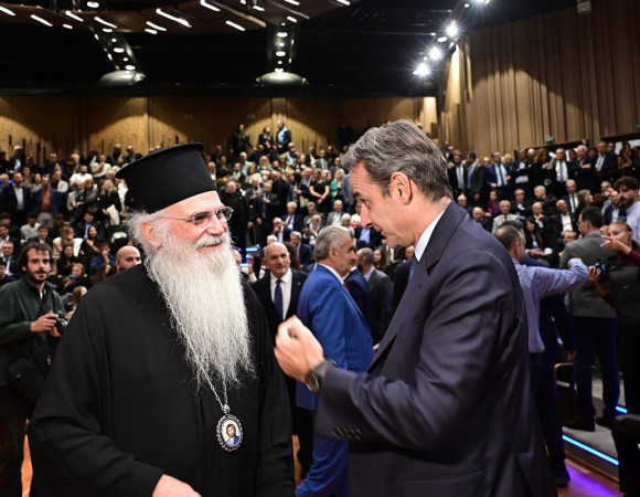 Με χειροκροτήματα έγινε δεκτός στην αίθουσα ο πρωθυπουργός. Λίγο νωρίτερα, θερμή υποδοχή είχαν επιφυλάξει οι παριστάμενοι και στον πρώην πρωθυπουργό Κώστα Καραμανλή. Οι δύο άνδρες αντάλλαξαν χειραψία.