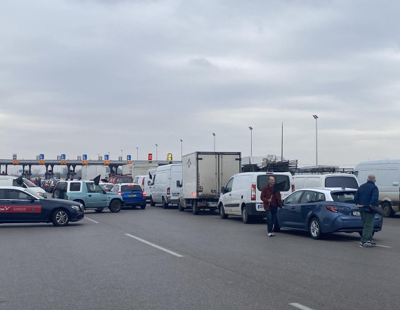 Περίπου 90 επαγγελματικά οχήματα έχουν φτάσει στα διόδια Μαλγάρων και έχουν παραταχθεί δίπλα στα τρακτέρ.
