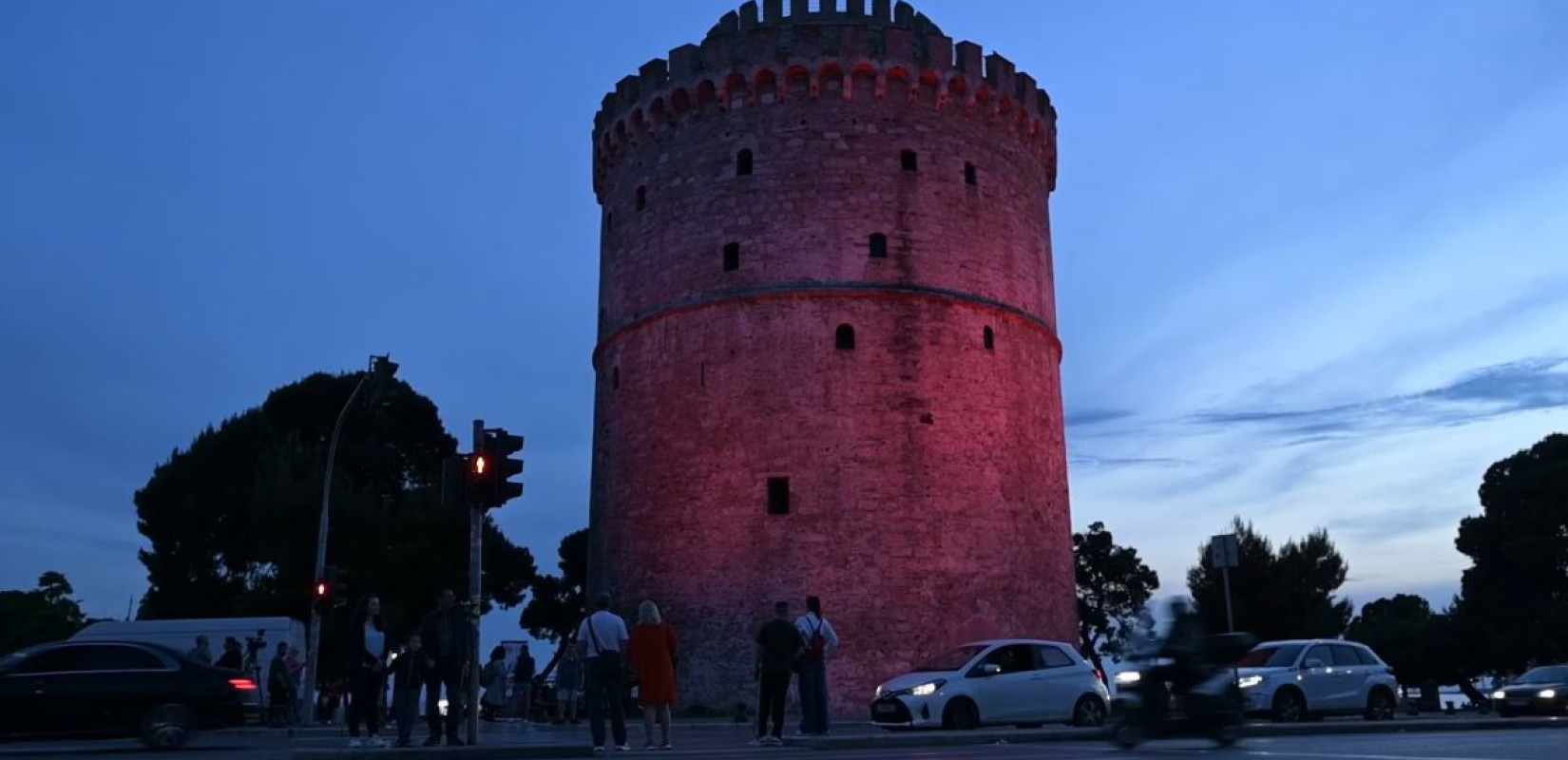Στα κόκκινα φωτίστηκε ο Λευκός Πύργος σήμερα το βράδυ, Τετάρτη, καθώς η 8η Μαΐου έχει καθιερωθεί ως Παγκόσμια Ημέρα Θαλασσαιμίας προκειμένου να αυξηθεί η ενημέρωση και η ευαισθητοποίηση για τη μεσογειακή αναιμία.
