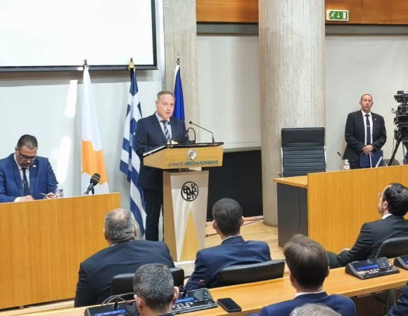 Παράλληλα, υπογράμμισε τη σημασία των συμβολικών σημείων σύνδεσης της Κύπρου με τη Θεσσαλονίκη, όπως η προτομή του Κυριάκου Μάτση στο ΑΠΘ, το πάρκο προς τιμήν του Γεωργίου Κατσάνη και την νεοϊδρυθείσα Έδρα Κυπριακών Σπουδών στο ΑΠΘ, τονίζοντας ότι δεν αποτελούν μόνο μνήμες του παρελθόντος, αλλά θεμέλια για το κοινό μέλλον Ελλάδας και Κύπρου.