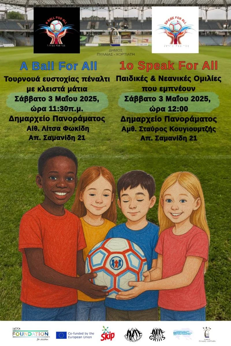 «Η παγκόσμια καμπάνια ‘‘Μια μπάλα για όλους’’ ξεκίνησε από το Πανόραμα πριν 7 χρόνια και έχει μοιράσει χιλιάδες ειδικές μπάλες σε παιδιά με οπτική αναπηρία από 215 χώρες και περιοχές. Φέτος, κάνει ένα βήμα εμπρός με τη δράση ‘‘Speak for al’’»» δηλώνει ο Ηλίας Μάστορας.