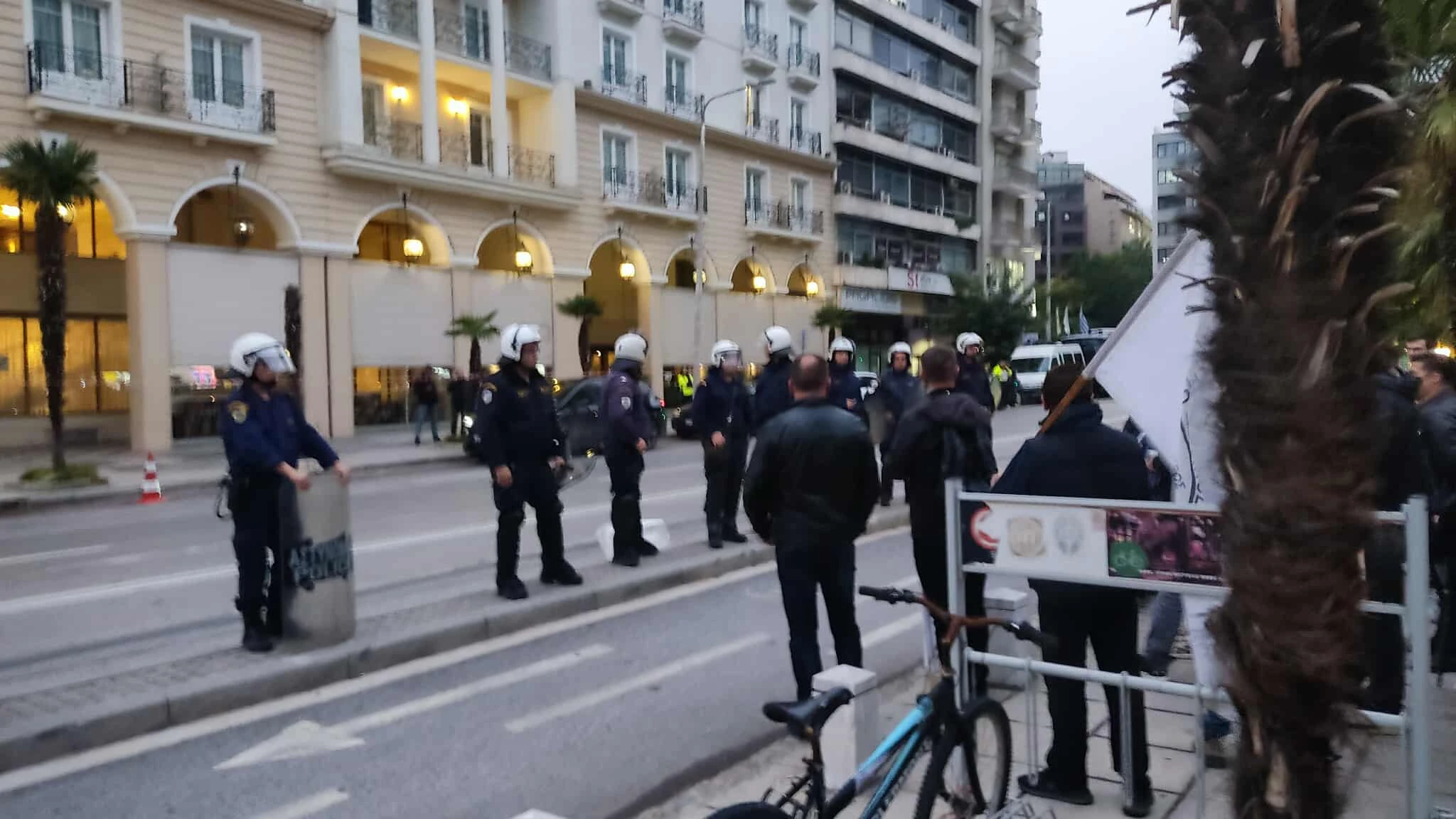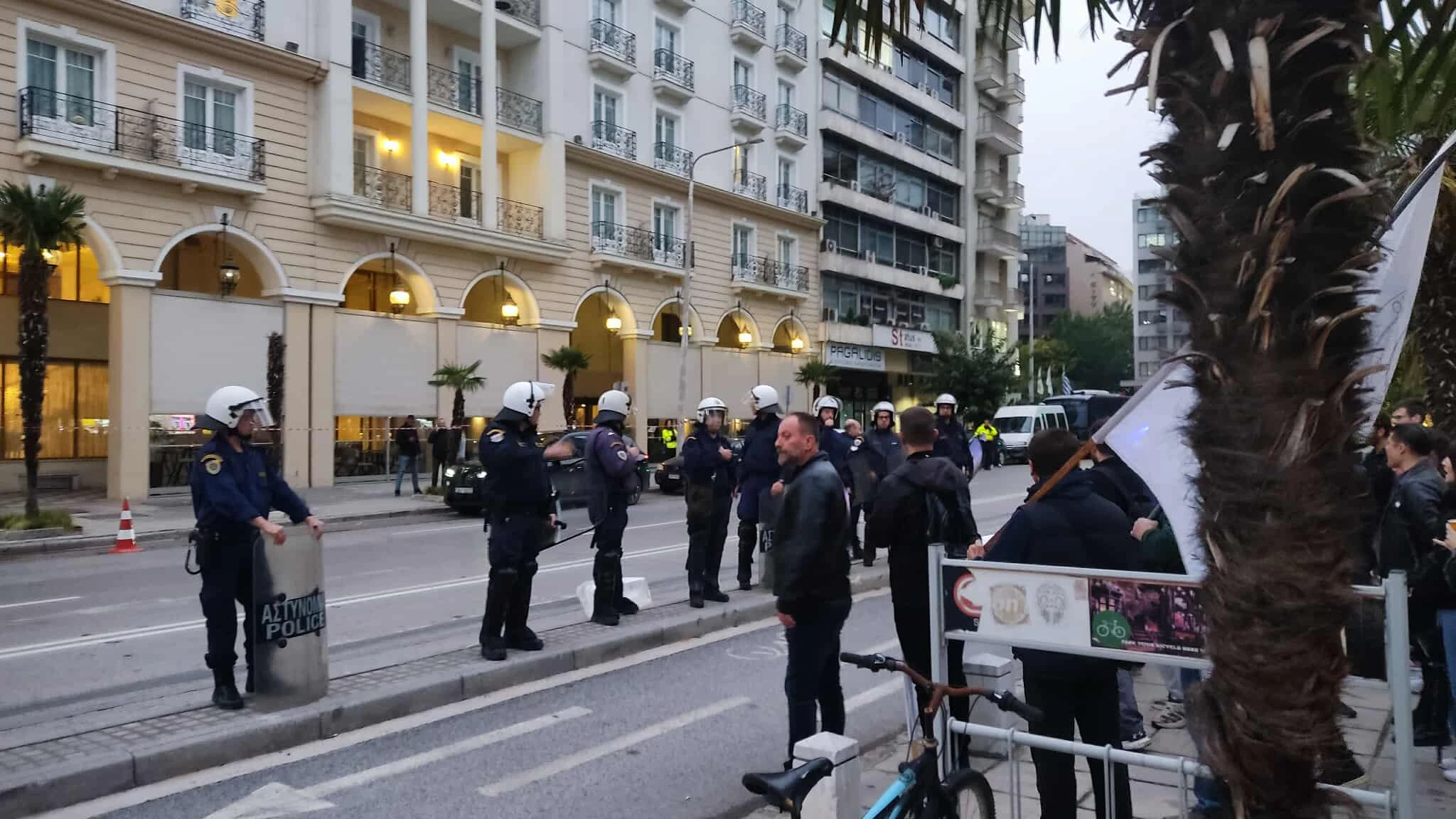 Εξω από το χώρο της εκδήλωσης πραγματοποιήθηκε διαμαρτυρία κατά του Ισραήλ από πολίτες αλλά και μέλη του ΠΑΜΕ κι άλλων συλλογικοτήτων της Θεσσαλονίκης. Οι συγκεντρωμένοι φώναζαν συνθήματα κατά της γενοκτονίας στη Γάζα.