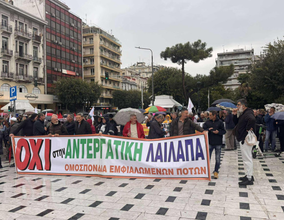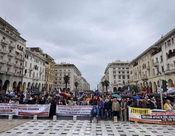 Πάρα την έντονη βροχόπτωση που πλήττει από νωρίς το πρωί την Θεσσαλονίκη, δεκάδες εργαζόμενοι, άνεργοι, συνταξιούχοι και φοιτητές συγκεντρώθηκαν στο Εργατοϋπαλληλικό Κέντρο Θεσσαλονίκης, από όπου ξεκίνησε η πορεία η οποία ολοκληρώθηκε λίγο μετά τις 12 το μεσημέρι.