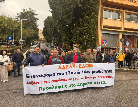 Κρατώντας πανό και φωνάζοντας συνθήματα οι συγκεντρωμένοι διεκδίκησαν την επαναφορά του πλαισίου των ελεύθερων συλλογικών διαπραγματεύσεων, όπως ίσχυαν στο παρελθόν.