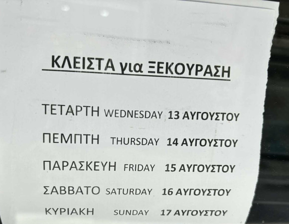 Την ίδια στιγμή, πολλά καταστήματα, συμπεριλαμβανομένων καφέ και εστιατορίων, έχουν κλείσει για λίγες μέρες. Χαρακτηριστική είναι η ανακοίνωση στην πρόσοψη μιας επιχείρησης που αναφέρει: «Κλειστά για ξεκούραση».