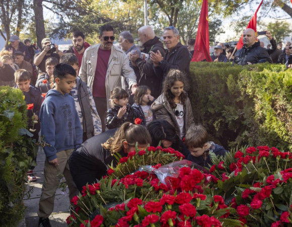 Φωτογραφίες της Eurokinissi.gr με πολίτες να τιμούν τους αγωνιστές του Πολυτεχνείου καταθέτοντας λουλούδια στο μνημείο του ΑΠΘ